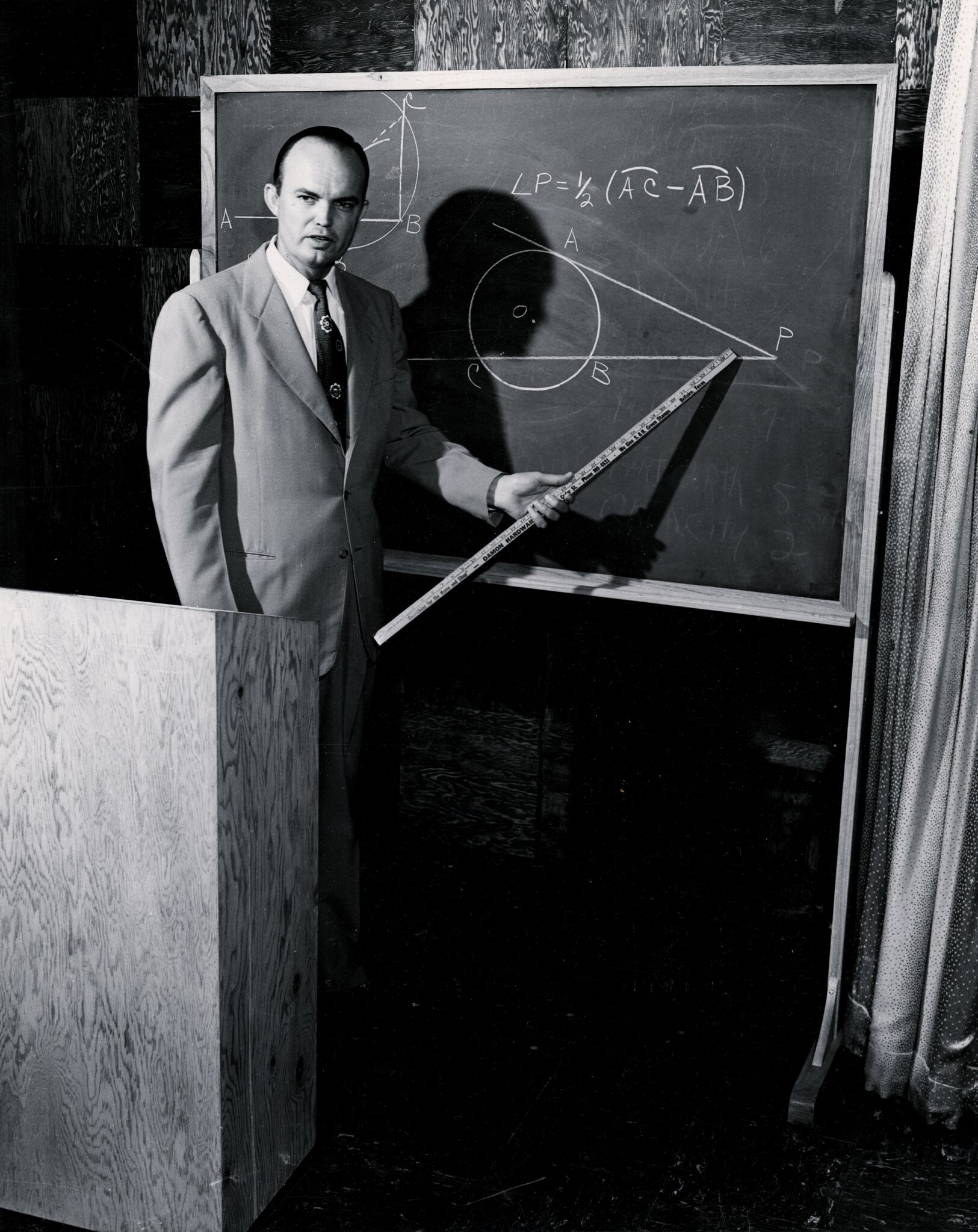 English: Geometry lessons on a chalkboard. Courtesy of Special Collections, University of Houston Libraries. UH Digital Library.
