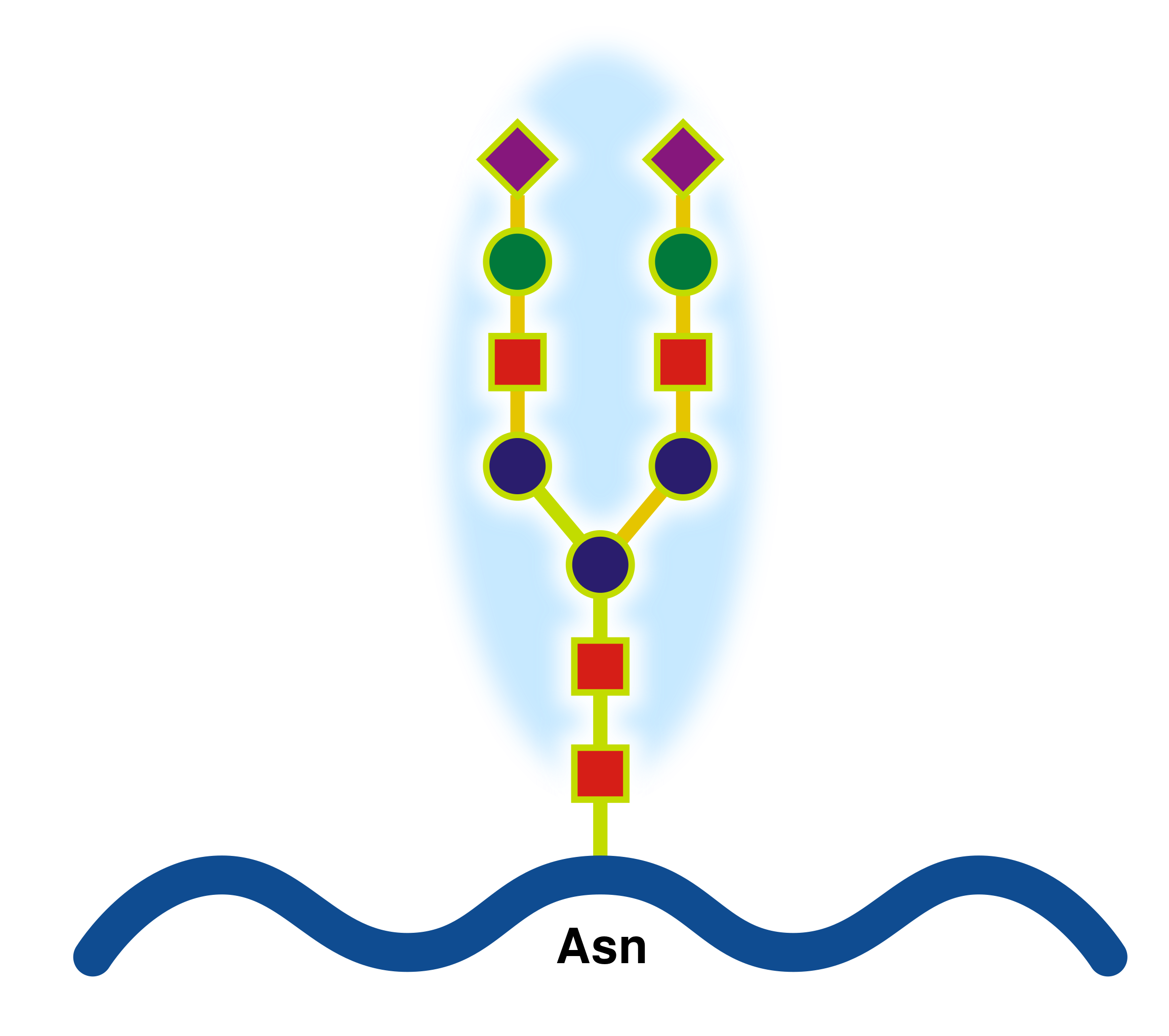 N-linked protein glycosylation (N-glycosylation of N-glycans) at Asn residues (Asn-x-Ser/Thr motifs) in glycoproteins. |