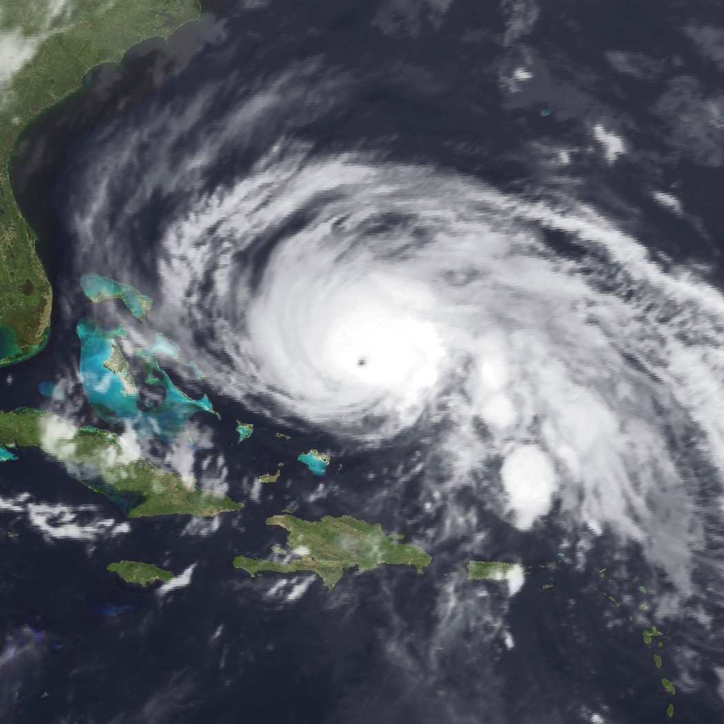 English: Hurricane Gloria at peak intensity northeast of the Bahamas on September 25, 1985