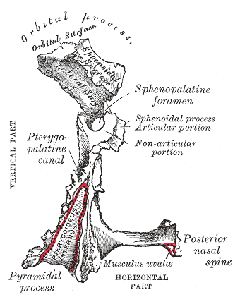 Left palatine bone. Posterior aspect. Enlarged. |