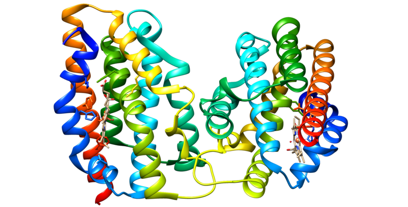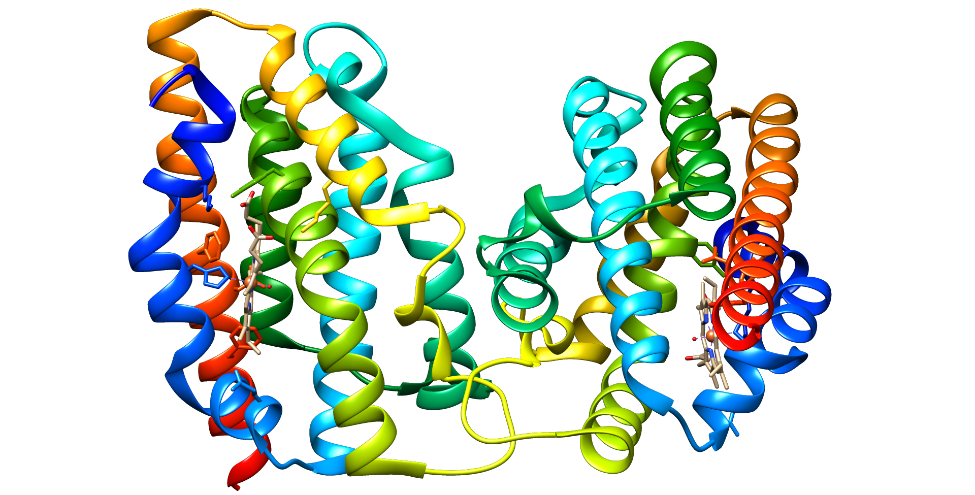 Français : Visualisation de la protéine Cristallisée HMOX1 à partir de l'identifiant PDB 1N3U sur le logiciel UCSF Chimera