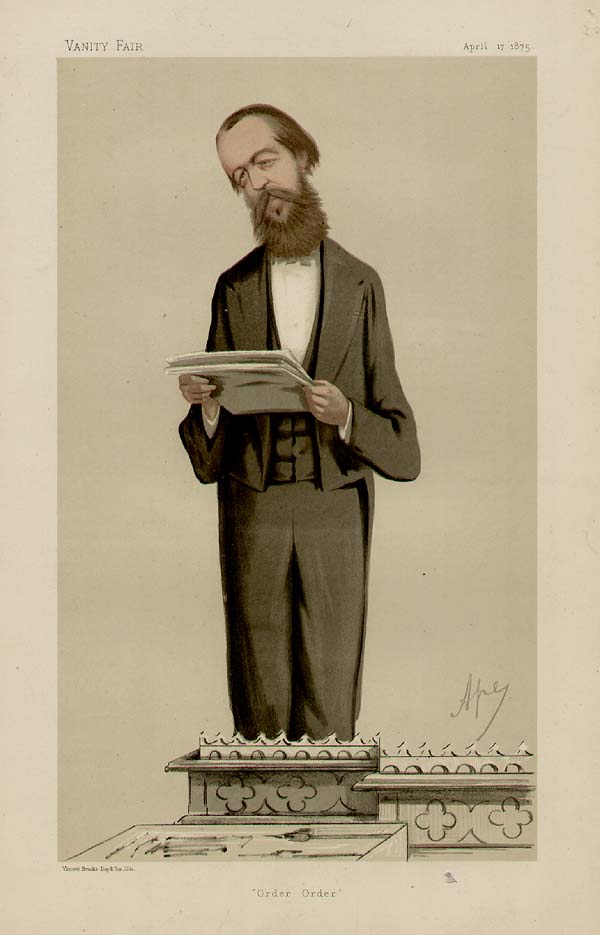 Caricature of Mr HC Raikes MP. Caption read "Order, order". |