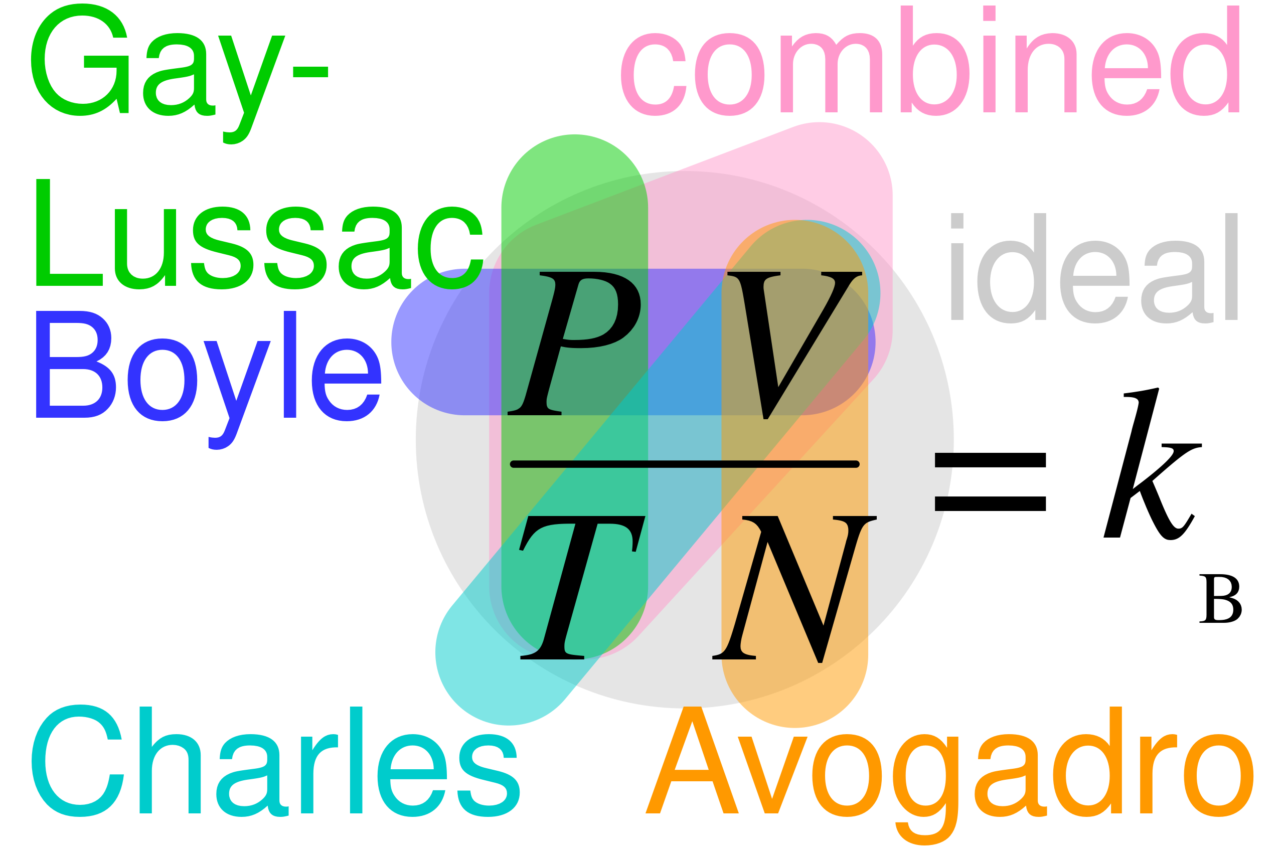 English: Relationships between Boyle's, Charles's, Gay-Lussac's, Avogadro's, combined and ideal gas laws.