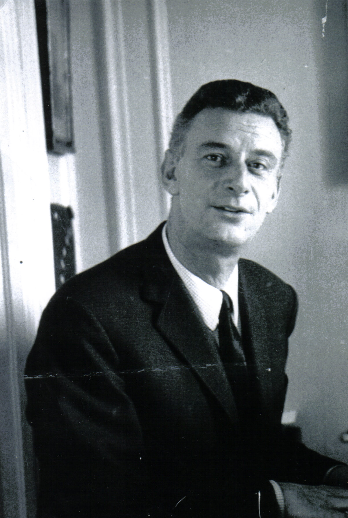English: Jacques Datin en 1972, at home avenue de Suffren in Paris, next to his piano during a work session.