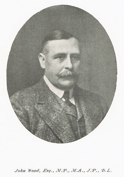 English: Portrait of John Wood (1857-1951), Esquire, Member of Parliament, Master of Arts, Justice of the Peace, Deputy Lieutenant for the County of Herefordshire, from the book 'Suffolk Leaders: Social and Political' by Ernest Gaskell [usually spelled Gaskill in official records (1868-1928)] published for private circulation [late 1911 or early 1912] by the Queenhithe Printing and Publishing Co. Ltd, 13 Bread Street Hill, Queen Victoria Street, London E.C.