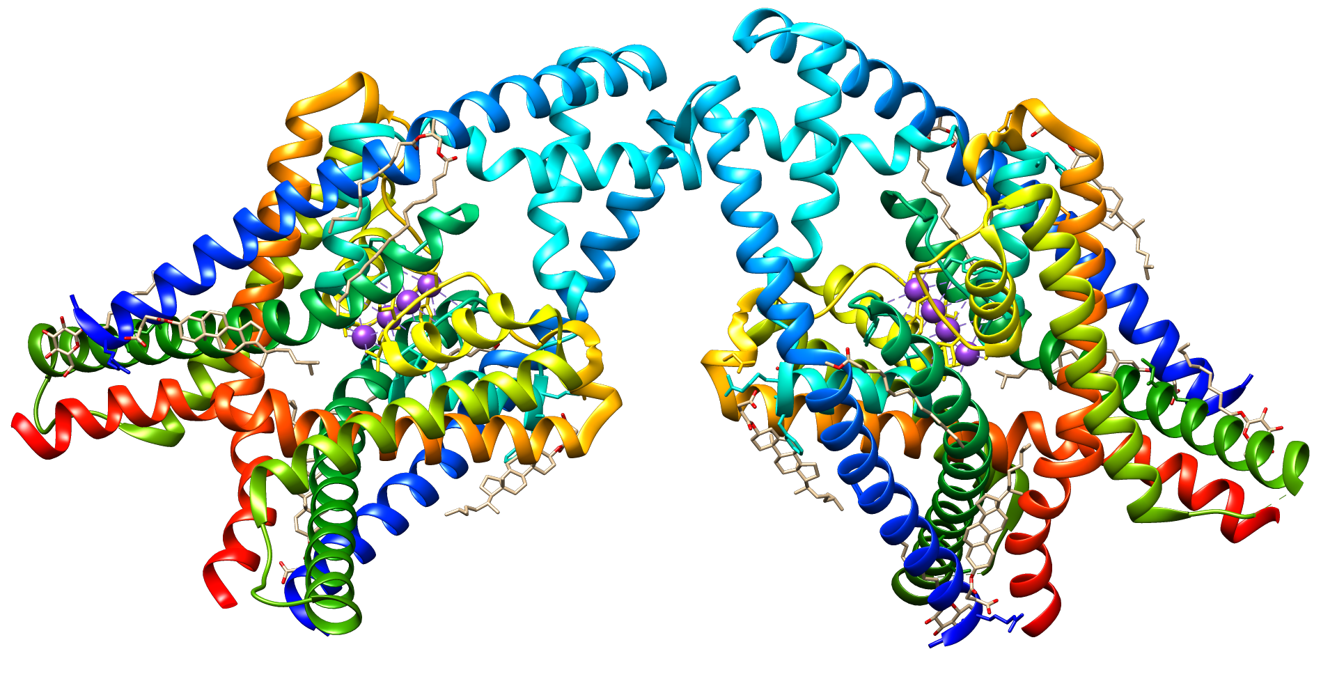 Français : Visualisation de la protéine Cristallisée KCNK3 à partir de l'identifiant PDB 6RV2 sur le logiciel UCSF Chimera