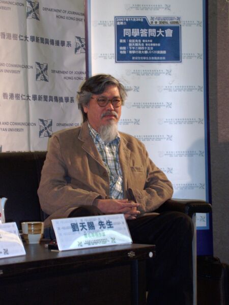 Français : M. Lau Tin Chi à la assemble générale de la faculté de journalisme et de communication, Shue Yan Université, Hong Kong