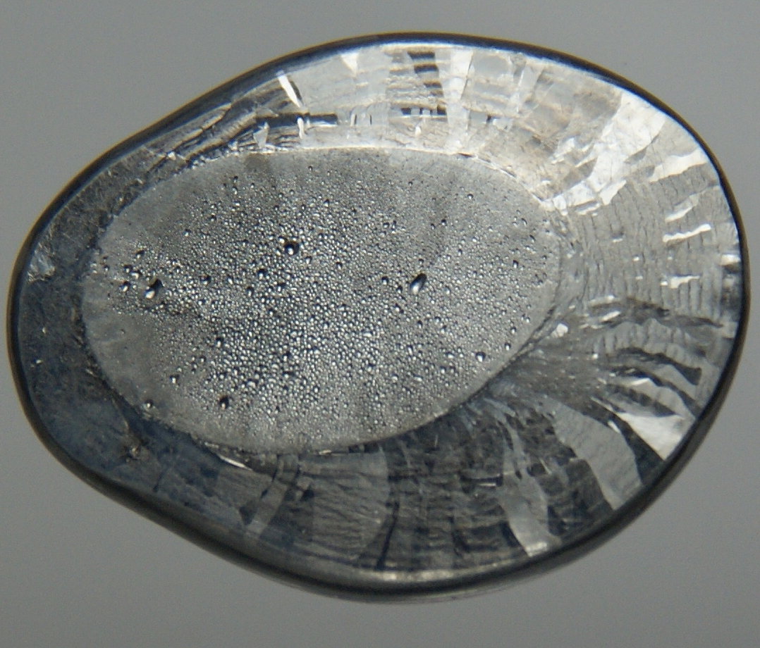 English: Ultrapure lead bead from two sides. Original size in cm: 1.5 x 2