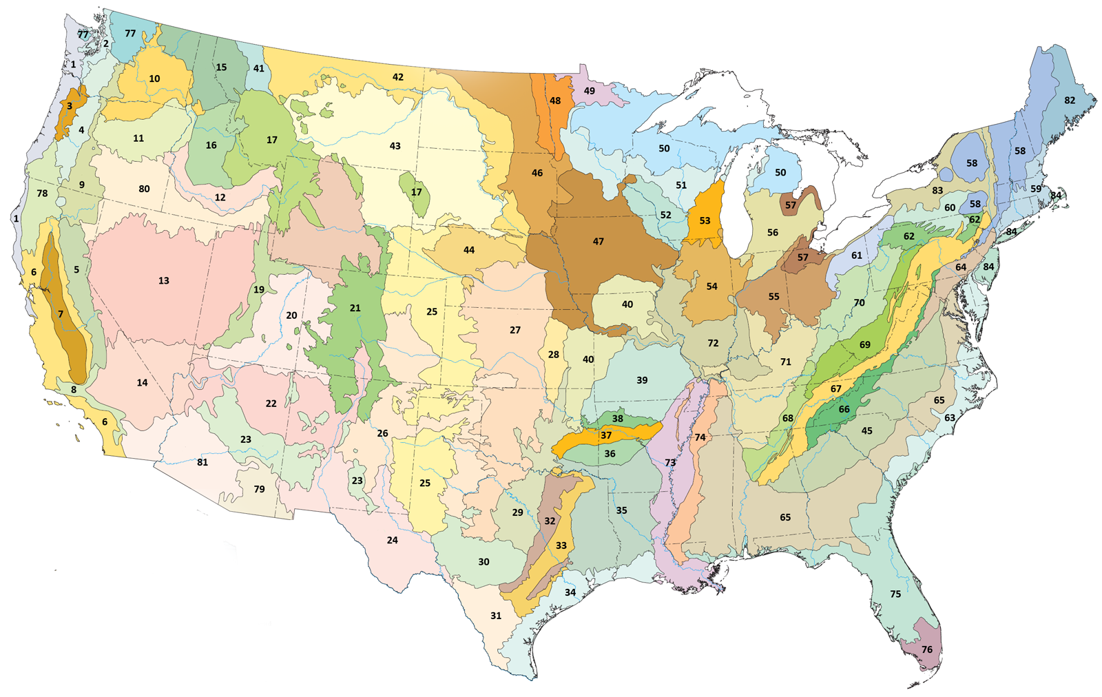 English: Level III ecoregions in the United States, as defined by the U.S. Environmental Protection Agency