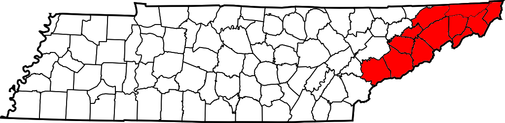 ملف:Map of Tennessee highlighting Former State of Franklin.png