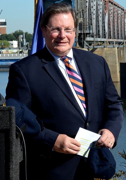 English: Mayor of Little Rock Mark Stodola speaks during the official naming ceremony for the ninth littoral combat ship USS Little Rock (LCS 9). (U.S. Navy photo by Mass Communication Specialist 2nd Class Christopher Newsome/Released)