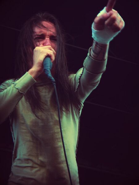 English: Spencer Chamberlain performing with Underoath as part of the Vans Warped Tour 2009.