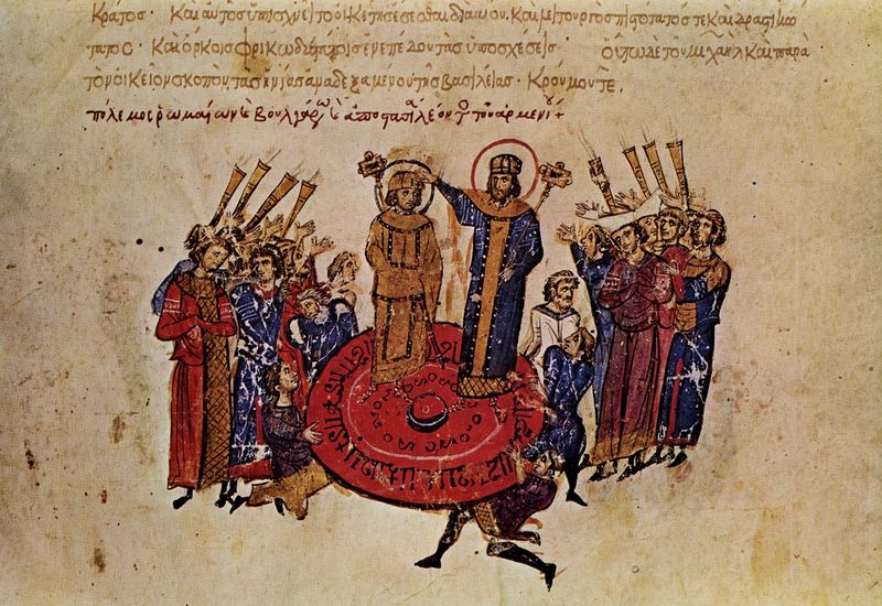 Michael I Rangabe proclaimed Emperor, miniature, Skyllitzes Matritensis, fol. 10v, detail |