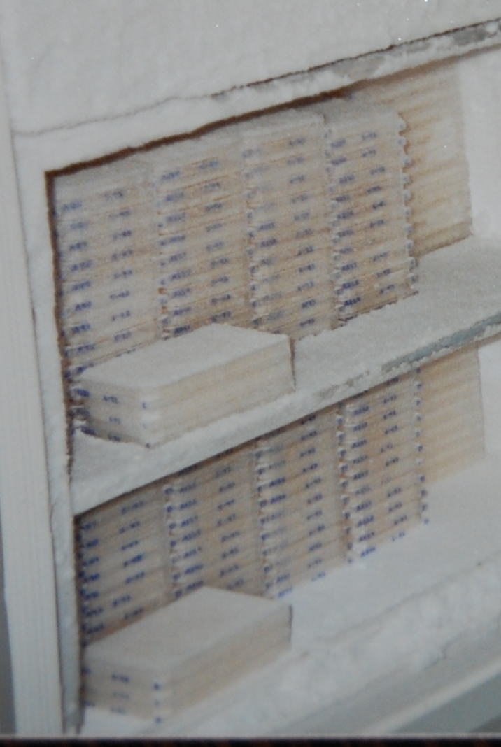 English: This is a photo of two copies of the Washington University Human Genome YAC Library that I copied in summer 1993. Each of those stacks is approx 12 microtiter plates. Each plate has 12x8 = 96 wells with different yeast clones. If I remember correctly, there are about 200 plates in the library (198 is the number in my head).