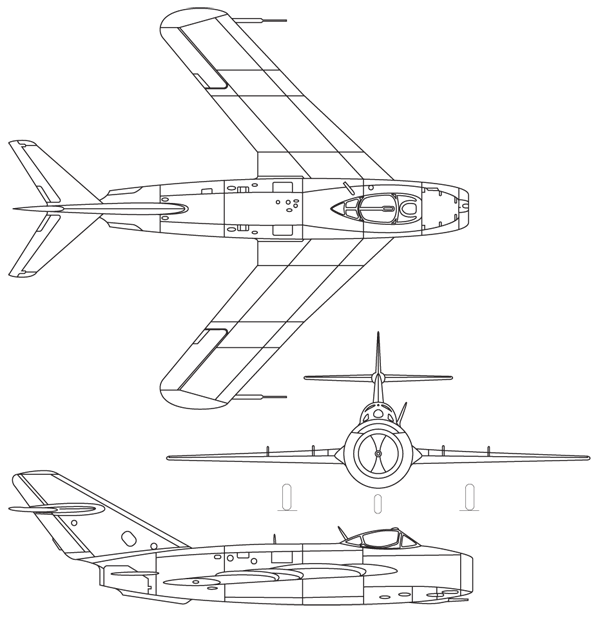 ملف:Mikoyan-Gurevich MiG-17 3-view line drawing.png