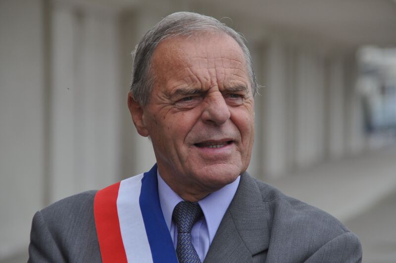 Français : Photographie d'André Veyssière, maire de Dugny depuis 1989, lors de la venue d'Hervé Morin, ministre de la Défense, au musée de l'air et de l'espace du Bourget.