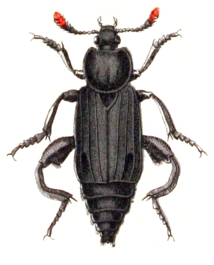 Necrodes littoralis male, from Calwer's Käferbuch, Table 9, Picture 14. Taxonomy was updated to 2008, using mostly the sites Fauna Europaea and BioLib. Please contact Sarefo if the determination is wrong! |