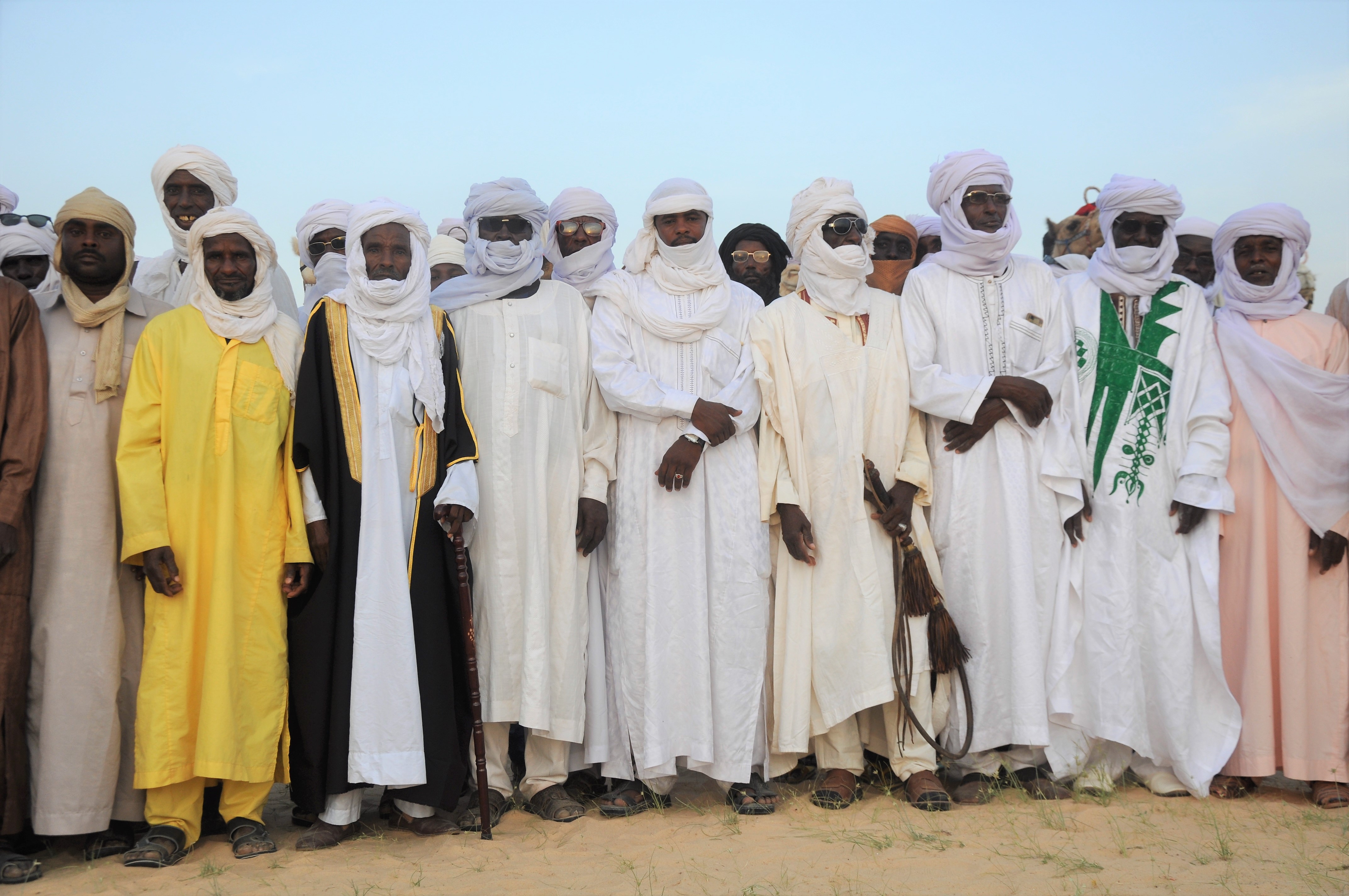 Français : Hommes Toubou lors d'une cérémonie de bienvenue pour le président du Niger Mahamadou Issoufou, entre Bedouaram et Koulélé dans l'extrême est du Niger (commune de N'Gourti, département de N'Gourti, région de Diffa).