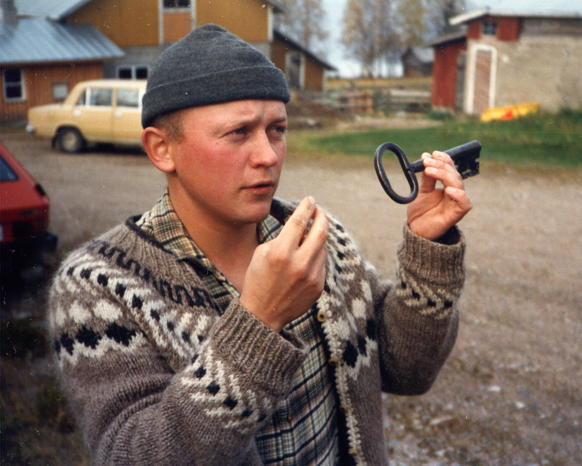 English: Mr Ossi-Ensio (Osmo) Korvua at his home yard- probably between 1980-1985