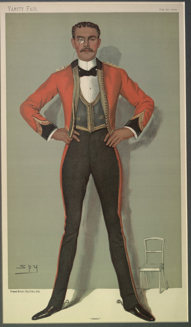 Sovereign No.9: Caricature of Capt Oswald Henry Ames (1862-1927), 2nd Life Guards. The tallest soldier in the British Army at the time. Caption reads "Ossie". |