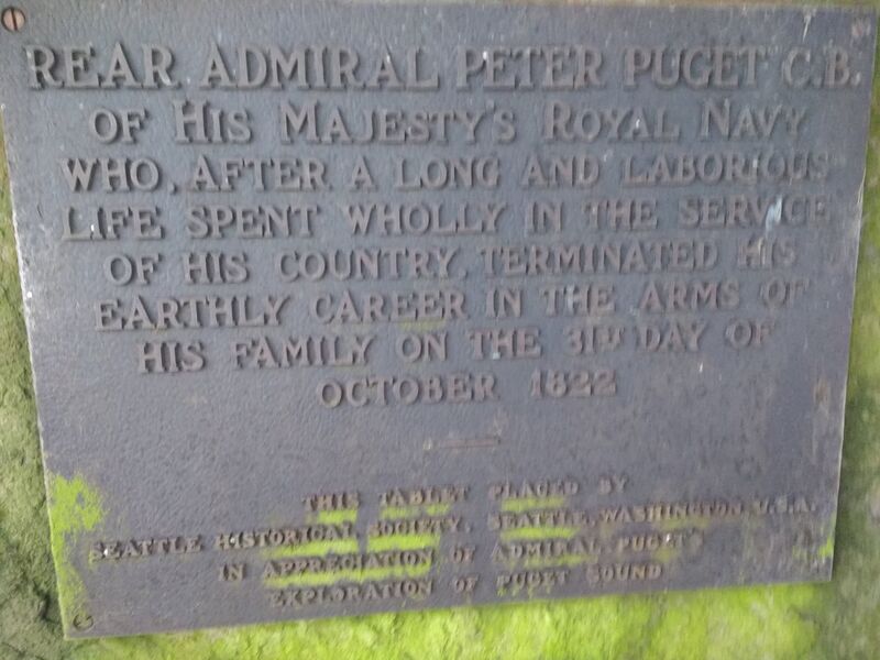 English: Dedication to Peter Puget on his sarcophagus in Wooley, Somerset