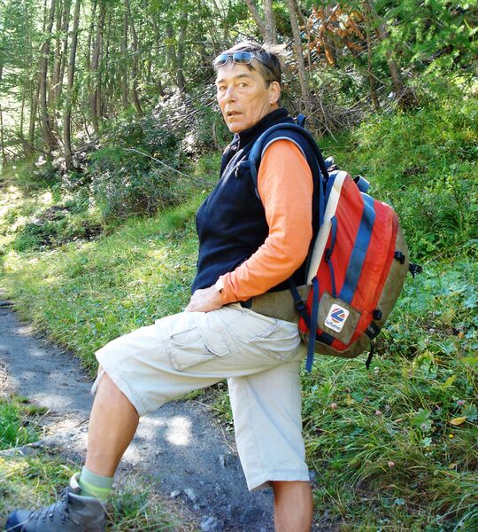 Français : Le professeur Pierre Arnaud lors d'une randonnée en montagne