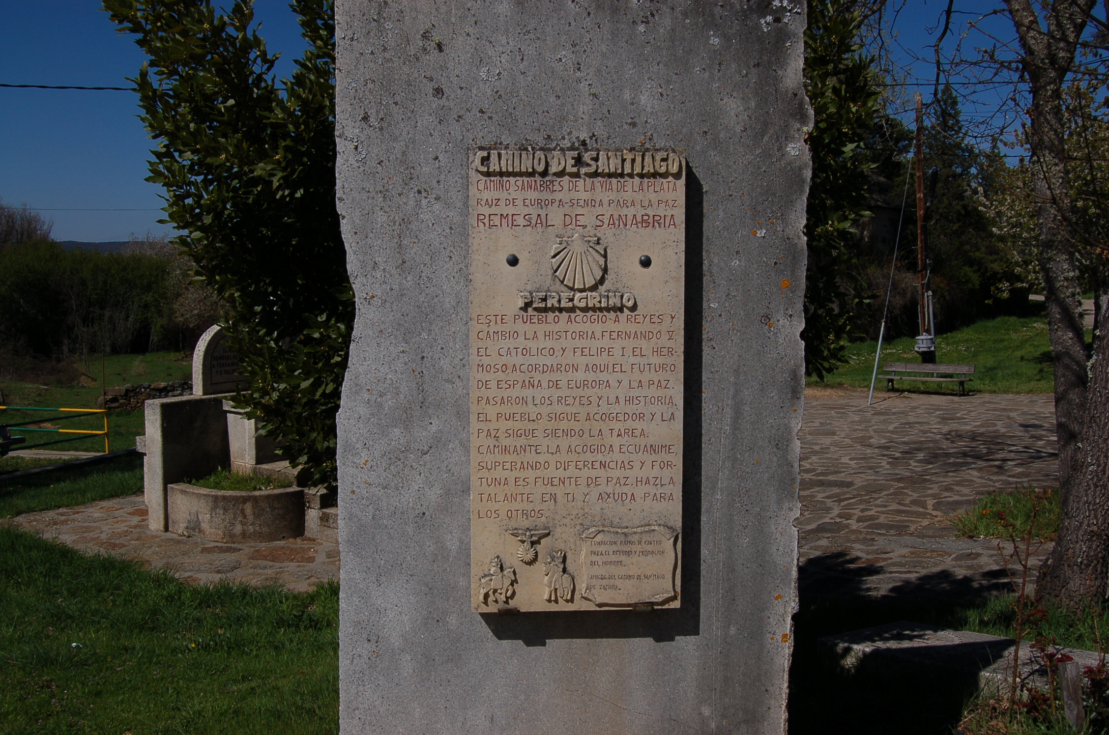 Español: Placa da Vía da Prata do Camiño de Santiago en Remesal, Palacios de Sanabria, sobre o encontro entre Fernando II de Aragón e Filipe I de Castela