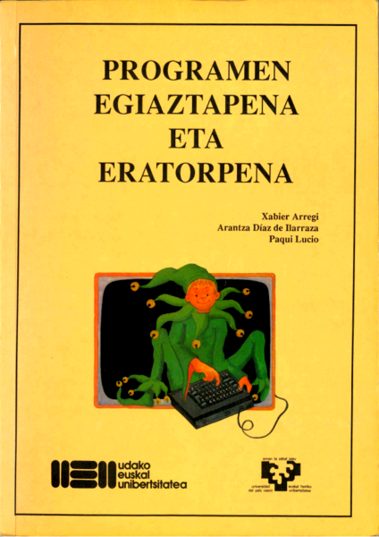 Euskara: 'Programen egiaztapena eta eratorpena' lburuaren azala (UEU, 2005) Xabier Arregi, Arantza Diaz de Ilarraza eta Paqui Lucio