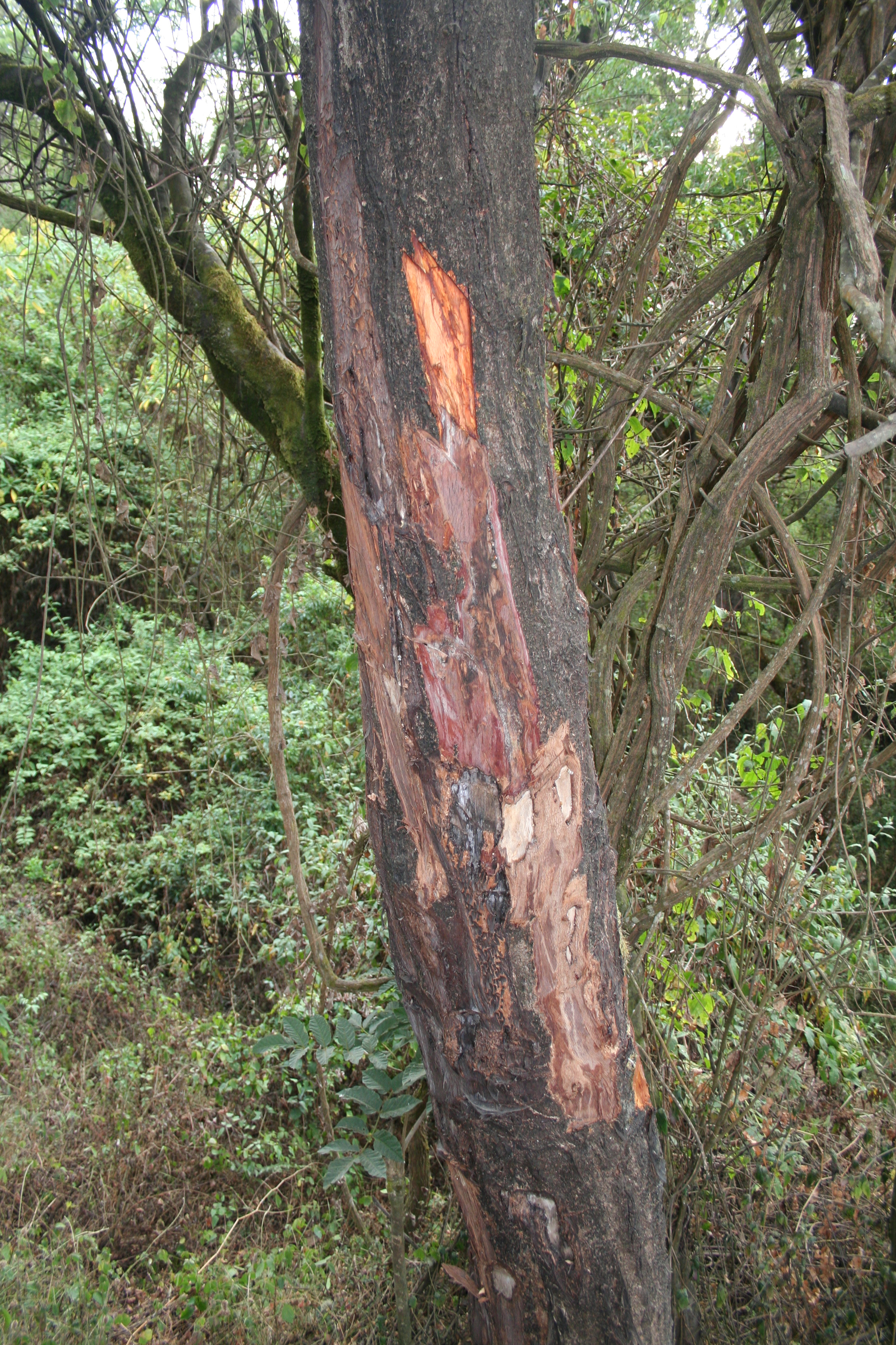 Prunus africana, bark harvested for medicine, Mt. Cameroon |