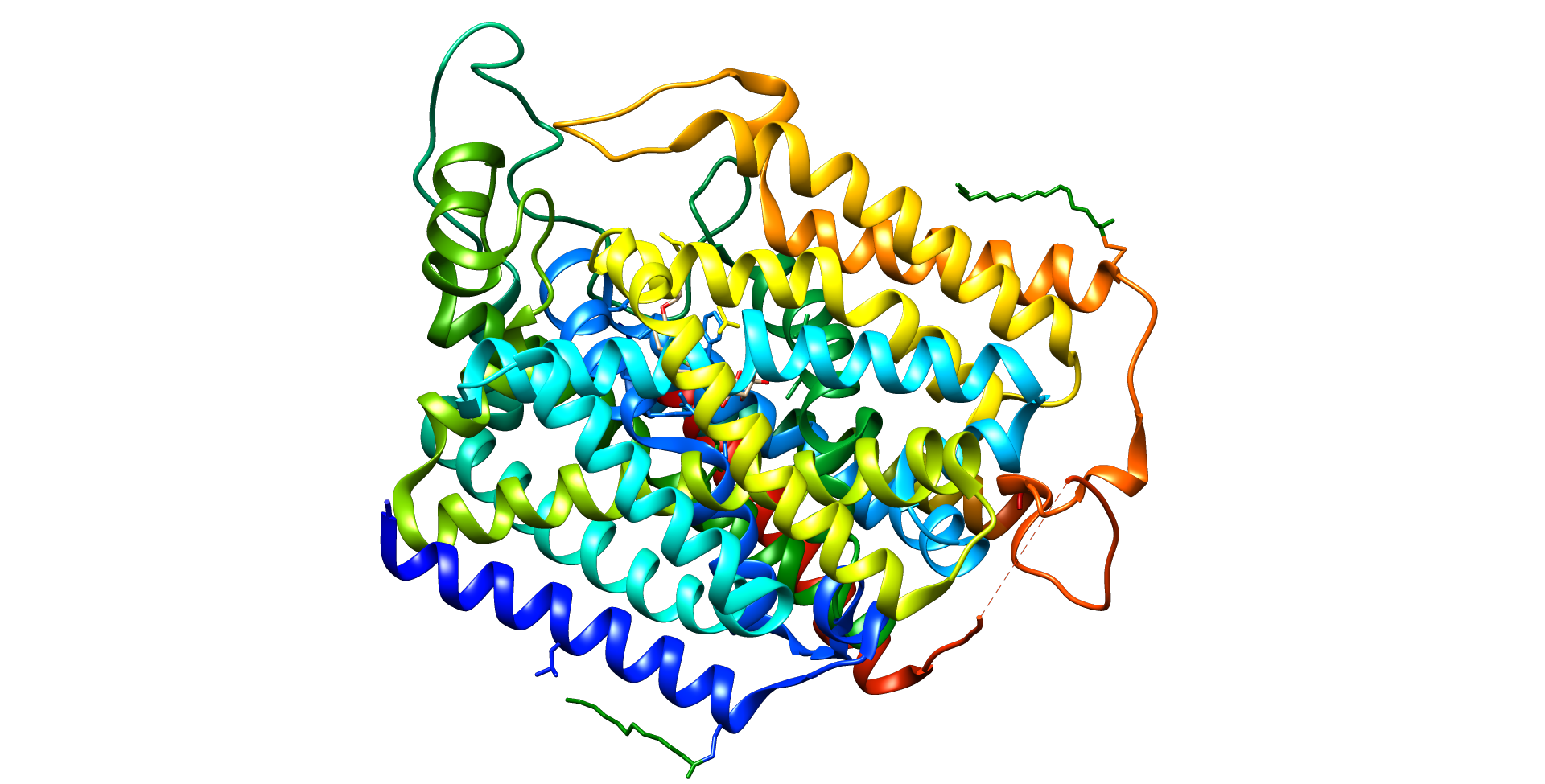 Français : Visualisation de la protéine Cristallisée SGLT2 à partir de l'identifiant PDB 7VSI sur le logiciel UCSF Chimera