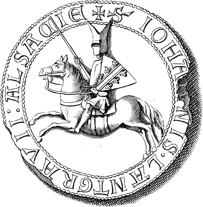 Français : Sceau du landgraviat de Basse-Alsace en 1292, reproduit dans Johann Daniel Schoepflin, Alsatia illustrata Germanica, Gallica, [Colmar] : Ex typographia regia, 1761.