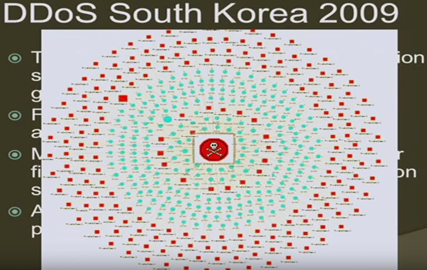 English: Visualization of 2009 cyber warfare attacks against South Korea