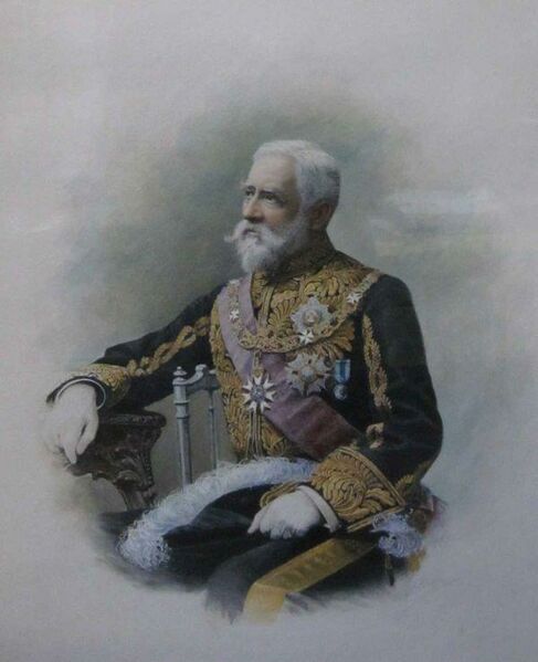 Portrait of Sir Edmund Monson, 1st Baronet (1841-1908), half length, seated watercolour with body colour signed lower right 53 cm x 43 cm |