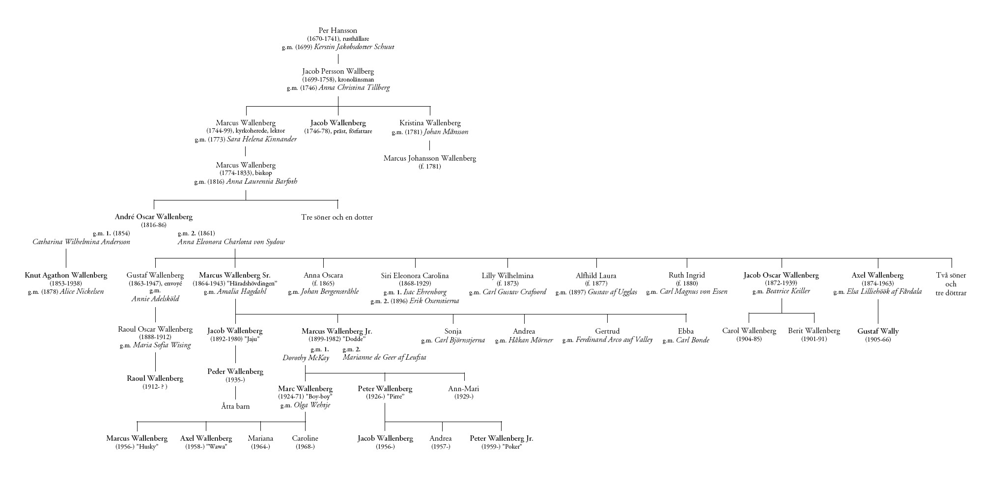 Svenska: Släktträd över släkten Wallenberg baserad på information i Wikipedia samt på allmänna uppgifter publicerade i media eller på Internet i övrigt.