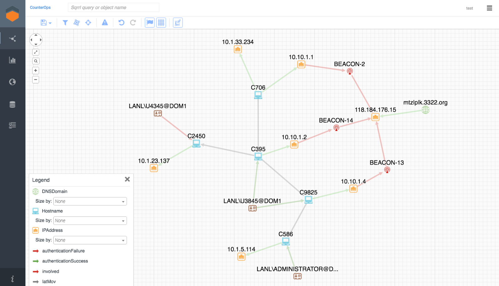 English: An example of Sqrrl's visual behavior graph, displaying user and entity activity on a network.