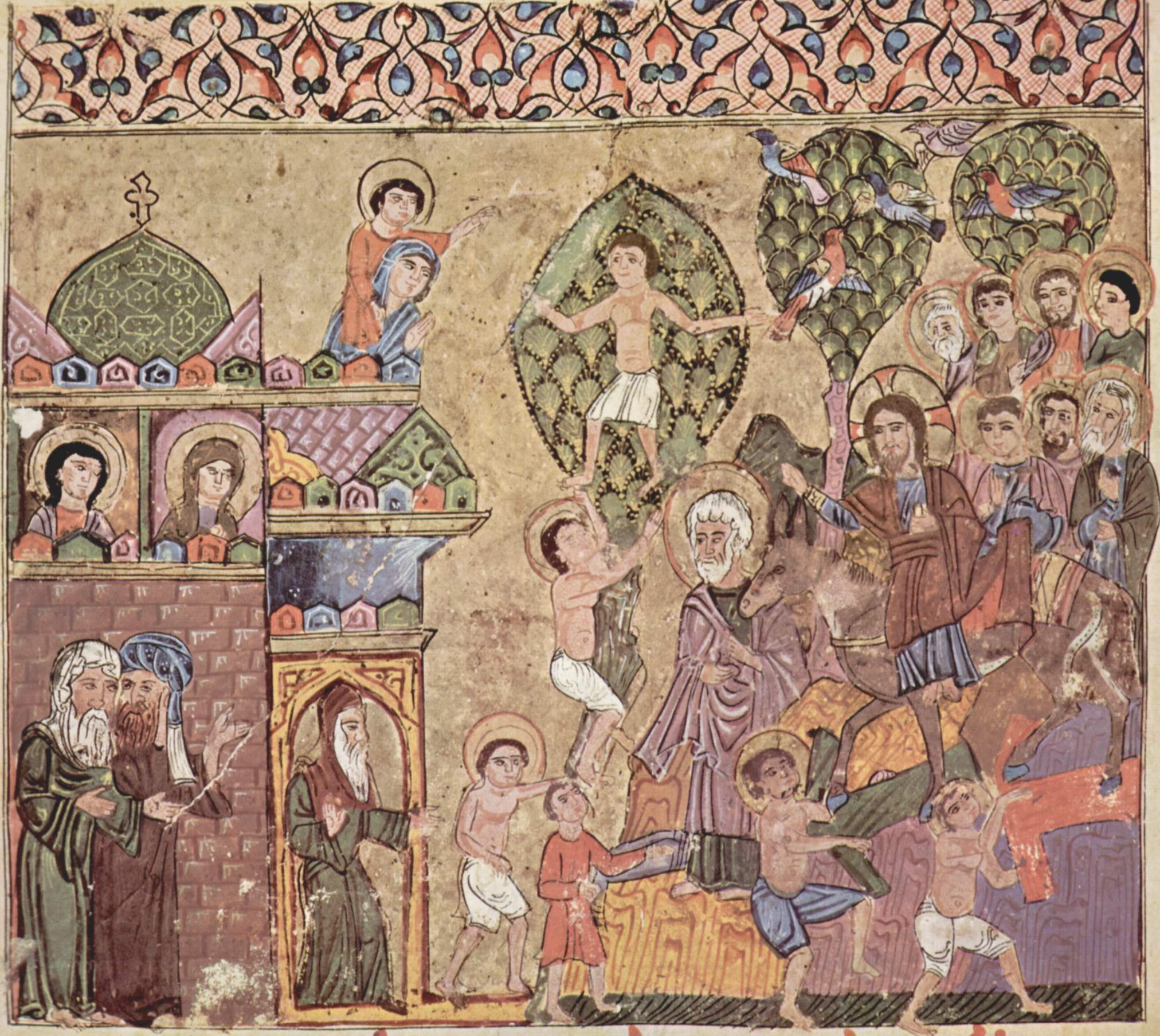 | العنوان | Deutsch: Kollektenbuch der Evangelien der syrischen Jakobitenkirche, Szene: Einzug Christi in Jerusalem