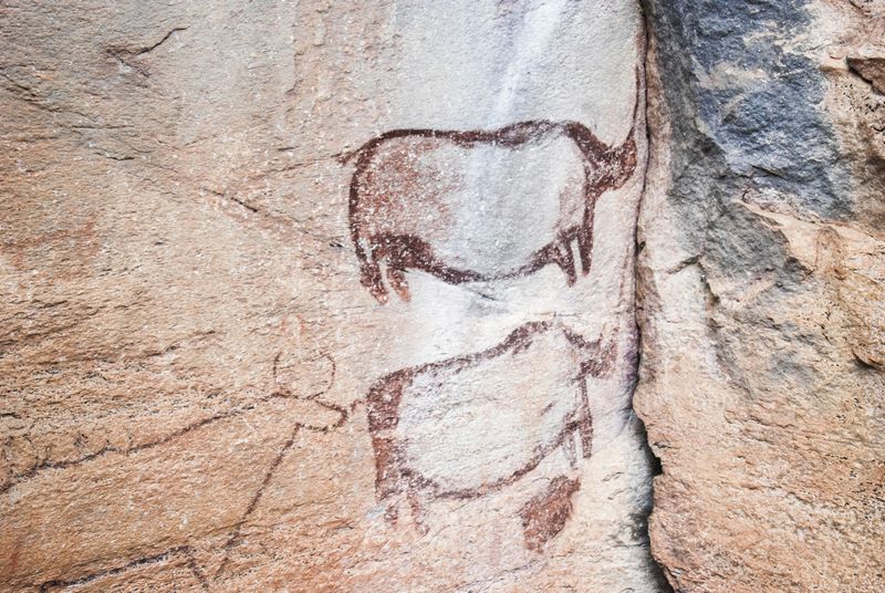 حيوانات وحيد القرن في موقع تسوديلو الأثري، بوتسوانا.