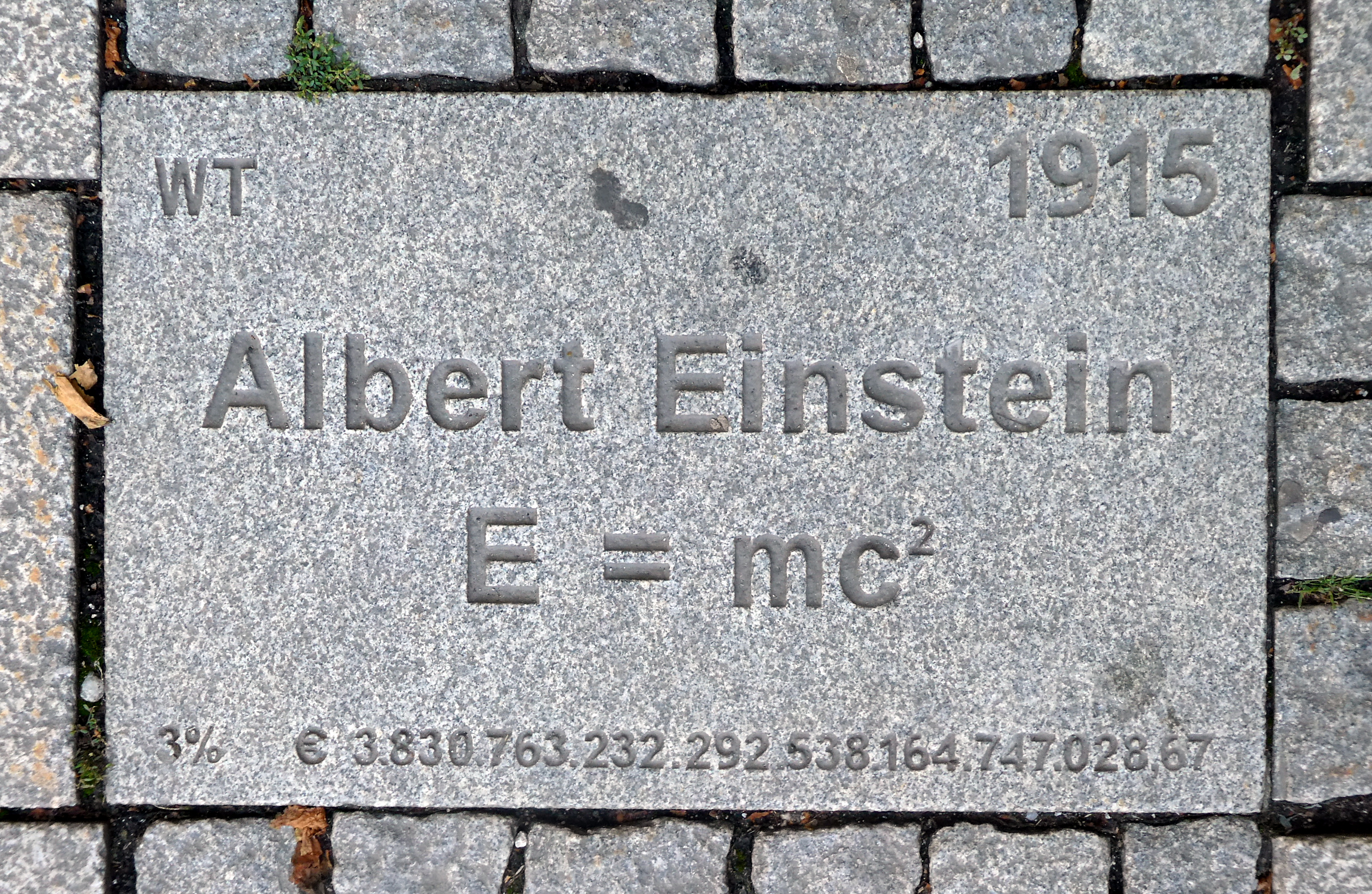 Deutsch: Wörgl (AT), Steinplatte über Albert Einstein und die Entdeckung der Allgemeinen Relativitätstheorie 1915, als „Meilenstein“ im Pflaster.