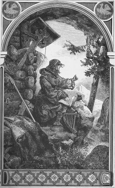 Ekkehard dichtet das Walthariuslied /aus: Illustrierte Literaturgeschichte, Autor: Otto von Leixner, Leipzig 1880 |
