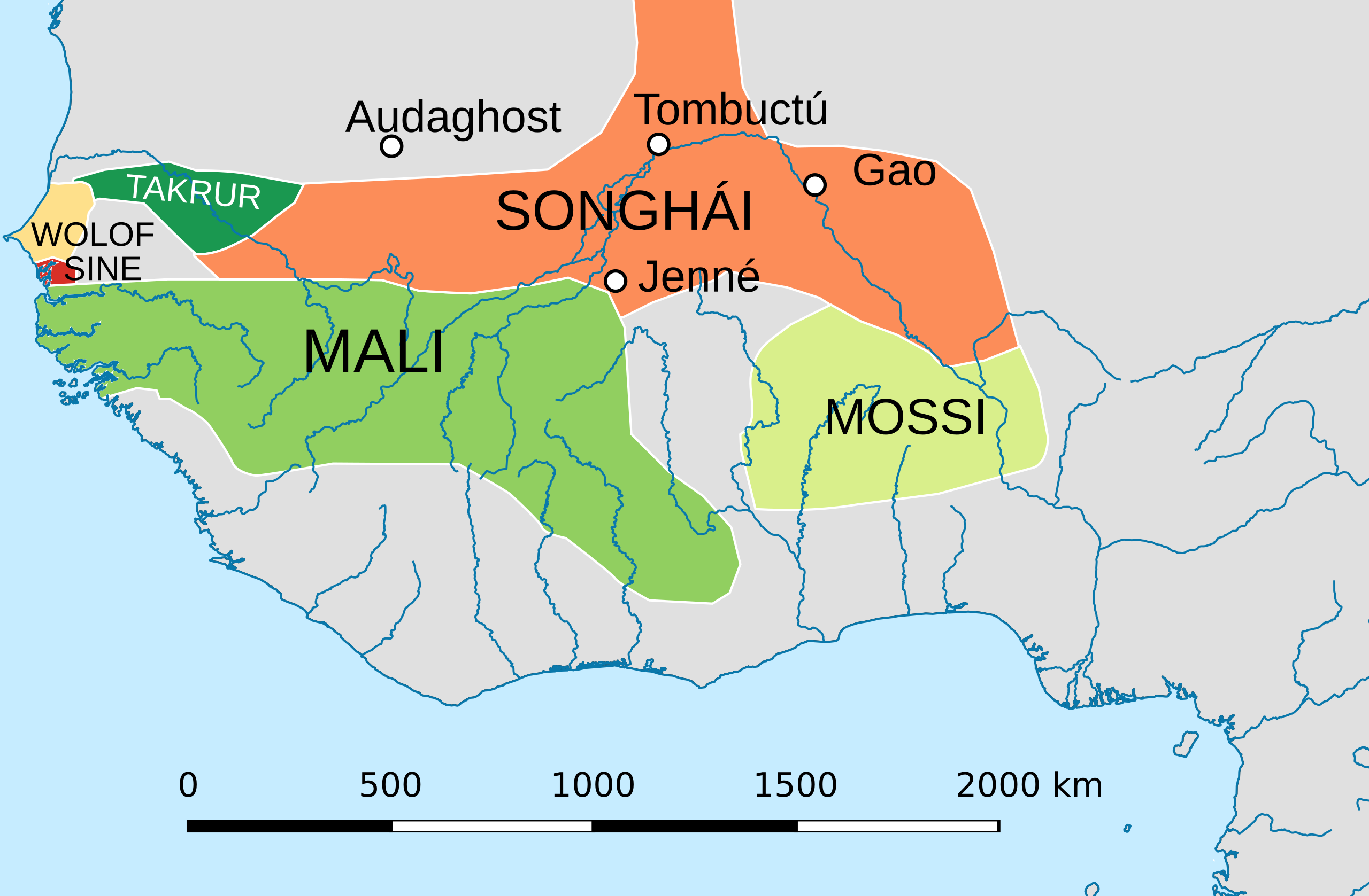 English: Map of West Africa, AD 1530. (Partially based on Atlas of World History (2007) - Islam and new states in Africa, map.)