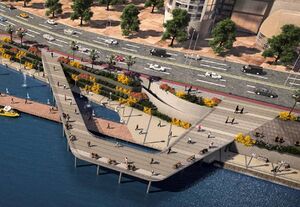وكشف مخطط تطوير المشروع الذي اطلع عليه مباشر، على أن القطاع الأول يتكون من المشروع من ممشى أفراد متدرج المناسيب على طول الكورنيش بطول 4.7 كم، وتضم 5 مطاعم، و5 كافيتريات، و62 محلاً تجارياً، و3 جراجات بسعة إجمالية 180 سيارة، و3 مدرجات بإجمالي أطوال 315 متراً سعة 1240 فرداً، ومسرح بمساحة 275 متراً مربعاً سعة 772 فرداً، وتراسات ونوافير مائية.[2]