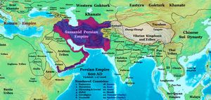Asia in 600 AD, showing the Persian Empire in Sassanid era before the Arab conquest.