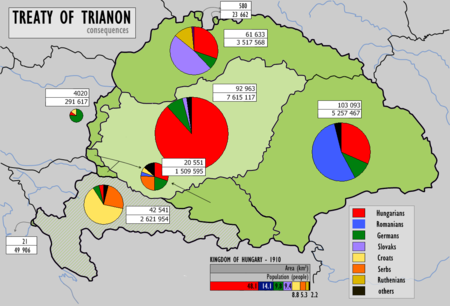 The Kingdom of Hungary was a multiethnic[9] state from its inception[10] until the Treaty of Trianon and it covered what is today Hungary, Poland, Slovakia, Transylvania and other parts of what is now Romania, Carpathian Ruthenia (now part of Ukraine), Vojvodina (now part of Serbia), Burgenland (now part of Austria), and other smaller territories surrounding present-day Hungary's borders. From 1102 it also included Croatia, being in personal union with it, united under the King of Hungary.