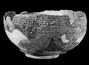 إناء من الخزف صنع في الحيرة عام 96هـ.
