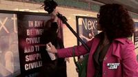 في 26 سبتمبر 2012 أعتقلت منى الطحاوي أثناء محاولتها طمس إعلان عنصري مساند لإسرائيل في محطة مترو الأنفاق بنيويورك.[3]