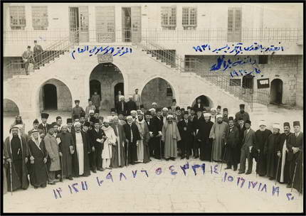 ١- مفتي فلسطين الحاج أمين الحسيني ٢- الزعيم الفلسطيني موسى كاظم باشا الحسيني ٣- محمد علي علوبة باشا من مصر – خلفه مولانا شوكت علي، من كبار العلماء المسلمين في الهند معتمراَ لباس رأس مميز بين مسلمي الهند ٤- محمد زبارة، مندوب إمام اليمن يحيى بن حميد الدين ٥- بشير السعداوي ٦ من ليبيا - حمد باشا بن جازي، أمير قبائل الحويطات في الأردن وجزيرة العرب ٧- الشيخ نعمان الأعظمي من العراق ٨- الشيخ محمد عبد اللطيف دراز، عميد جامعة الأزهر في مصر ٩- رؤوف باشه ١٠- الشيخ مصطفى الغلاييني من بيروت ١١- الشيخ عبد الوهاب النجار وخلفه دون رقم الوطني الفلسطيني إسعاف النشاشيبي ١٢- الشيخ ابراهيم اطفيش من الجزائر ١٣- محمد طارق ١٤- العلاّمة الإمام محمد رشيد رضا من طرابلس ، لبنان ١٥- محمد علي الطاهر ١٦- عبدالقهار مذّكر من إندونسيا ١٧- الشيخ محمد تفاحة ١٨- الشيخ سعيد الخطيب ١٩- الحاج مصطفى رجب من مصر ٢٠- حامد المليجي مندوب جريدة البلاغ من القاهرة.
