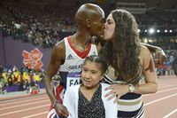 محمد فرح وزوجته تانيا وابنته في أولمبياد لندن 2012.