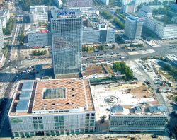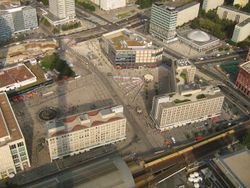 Many historic buildings are located in the area around Alexanderplatz. The traditional seat of city government, the Rotes Rathaus, or Red City Hall, is located nearby, as is the former East German parliament building, the Palast der Republik, demolition of which began in February 2006 and has been completed. The new building for the site has been in planning.[1]