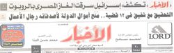 مانشيت جريدة الأخبار، الأخبار تكشف: إسرائيل تسرق الغاز المصري بالروبوت، لقاء مع نائل الشافعي، 16 نوفمبر 2012.