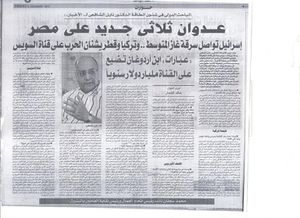1. ^ رشا عزب (2012-04-18). "مصر تنازلت لاسرائيل عن حقوق بترول ب200 مليار دولار وغواصتها وصلت السواحل المصري وضفاف النيل". جريدة الفجر. Retrieved 2012-04-21.